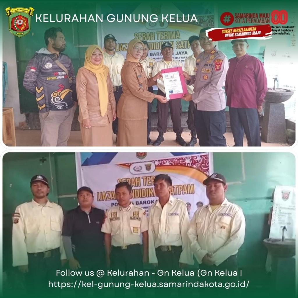 Kelurahan Gunung Kelua melaksanakan kegiatan Serah Terima Ijazah Pelatihan Dasar Satpam (Gada Pratama) oleh Pokmas Barokah Jaya, sebagai bagian dari program Pemberdayaan Masyarakat (Probebaya) Tahun 2025.